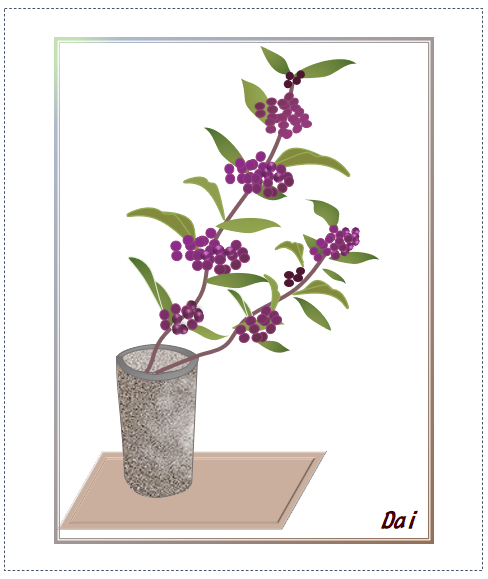 鉢に紫式部の枝を入れたものを描いてみます。