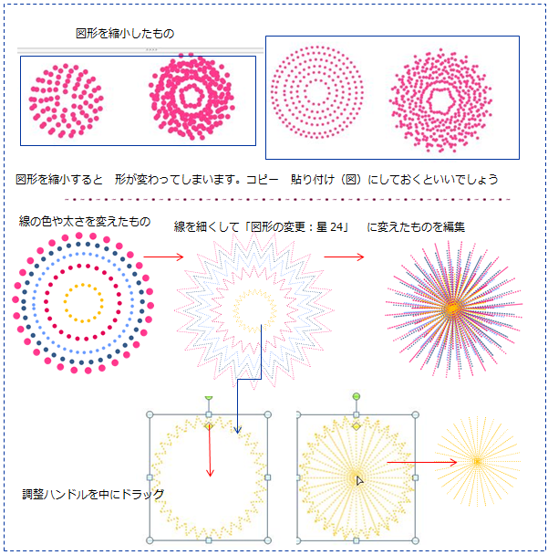 コピーしたものを 「星24」または 「星32」に変更して調整ハンドルで 形を変更して行きます。